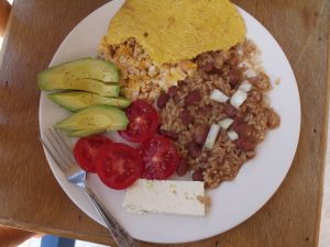 Scrambled eggs, beans and rice, avocado, tomatoes, cheese and an arepa all enjoyed with the best coffee on the planet. The problem with the fresh delicacies here is that after a few days one is hungry all over again.