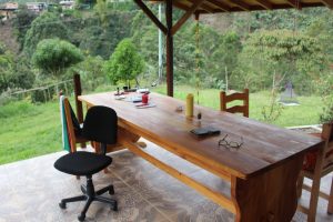 Sitting in my al aire libre office looking at banana and mandarin trees I get the idea that I am only an intruder into this magnificent landscape of overwhelming green and breezes. My neighbor, Fabio, harvests coffee beans to sell while I marvel at the diversity of birds, monitor the same old news, write harebrained stories and read novels. You can never be bored when there are books.